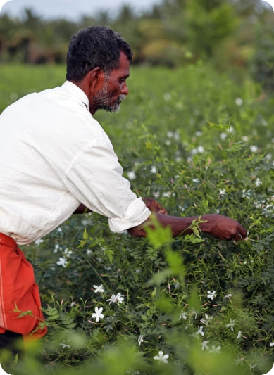 The flowers are hand-picked, one by one, during the early hours of the morning. With this comes its challenges. The labor-intensive and narrow harvest window makes the flower less popular among farmers in the region. As a result, various schemes are being implemented to encourage the farmers to continue growing and harvesting Jasmine flowers. Offering a steady base price and bonuses, providing saplings free of cost, and training programs are some of the initiatives in place to maintain consistent procurement. Good Agricultural Practices are implemented, and several measures are taken to prevent crop diseases. A farm-to-factory model ensures that the freshest of flowers are processed and better prices for the farmers.